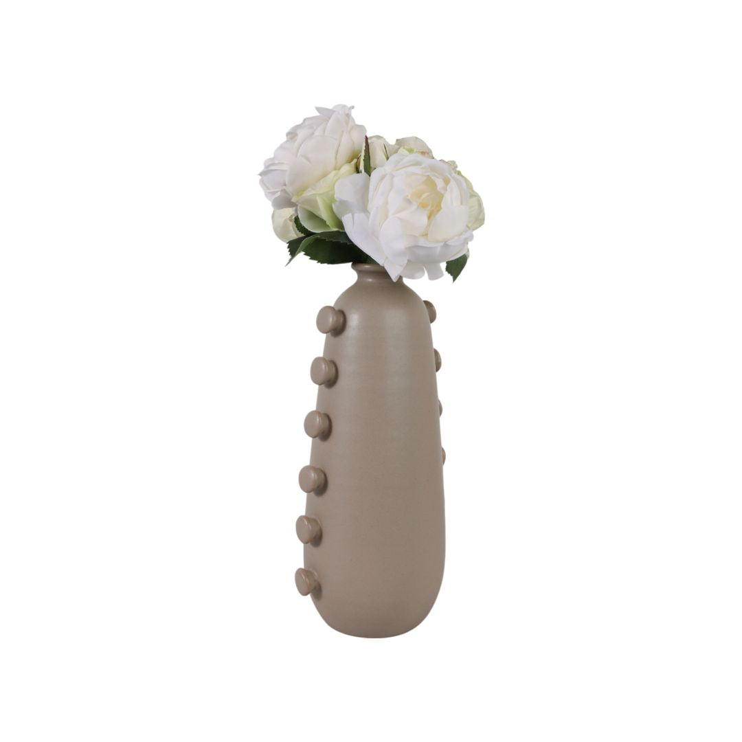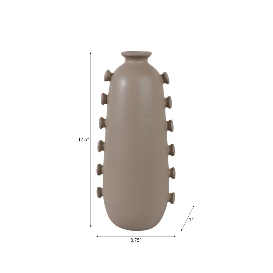 Jarrón “Maricopa” mediano de 18″ en tono tan, con un diseño limpio y versátil que se integra fácil en cualquier ambiente. Su color neutro y su forma elegante lo hacen perfecto como pieza decorativa independiente o acompañado de flores, ramas o elementos naturales. Ideal para aportar calidez, equilibrio y un toque sofisticado a salas, recibidores o rincones decorativos.