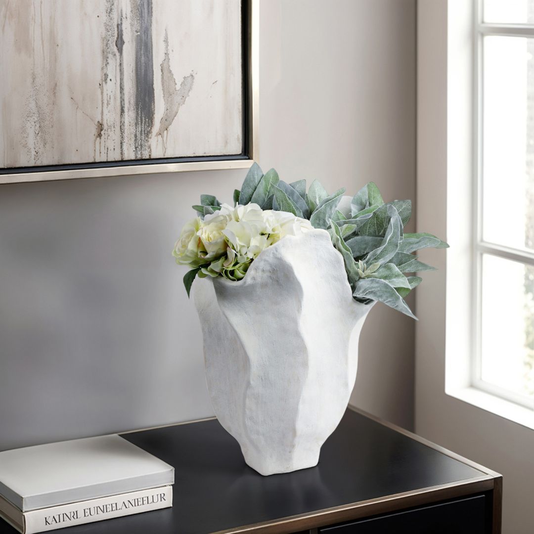 Jarrón decorativo “Spadena” de 17″ en porcelana color marfil, con proporciones generosas y diseño sofisticado. Su silueta elegante y su acabado refinado lo convierten en una pieza ideal para decorar salones, recibidores o rincones especiales. Perfecto tanto como objeto decorativo independiente como combinado con flores, ramas secas o arreglos florales — aporta estilo, altura y protagonismo al ambiente.