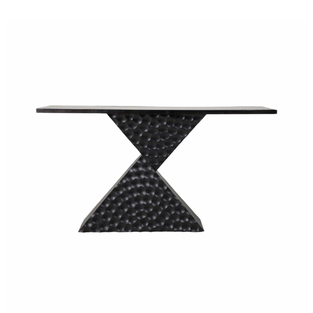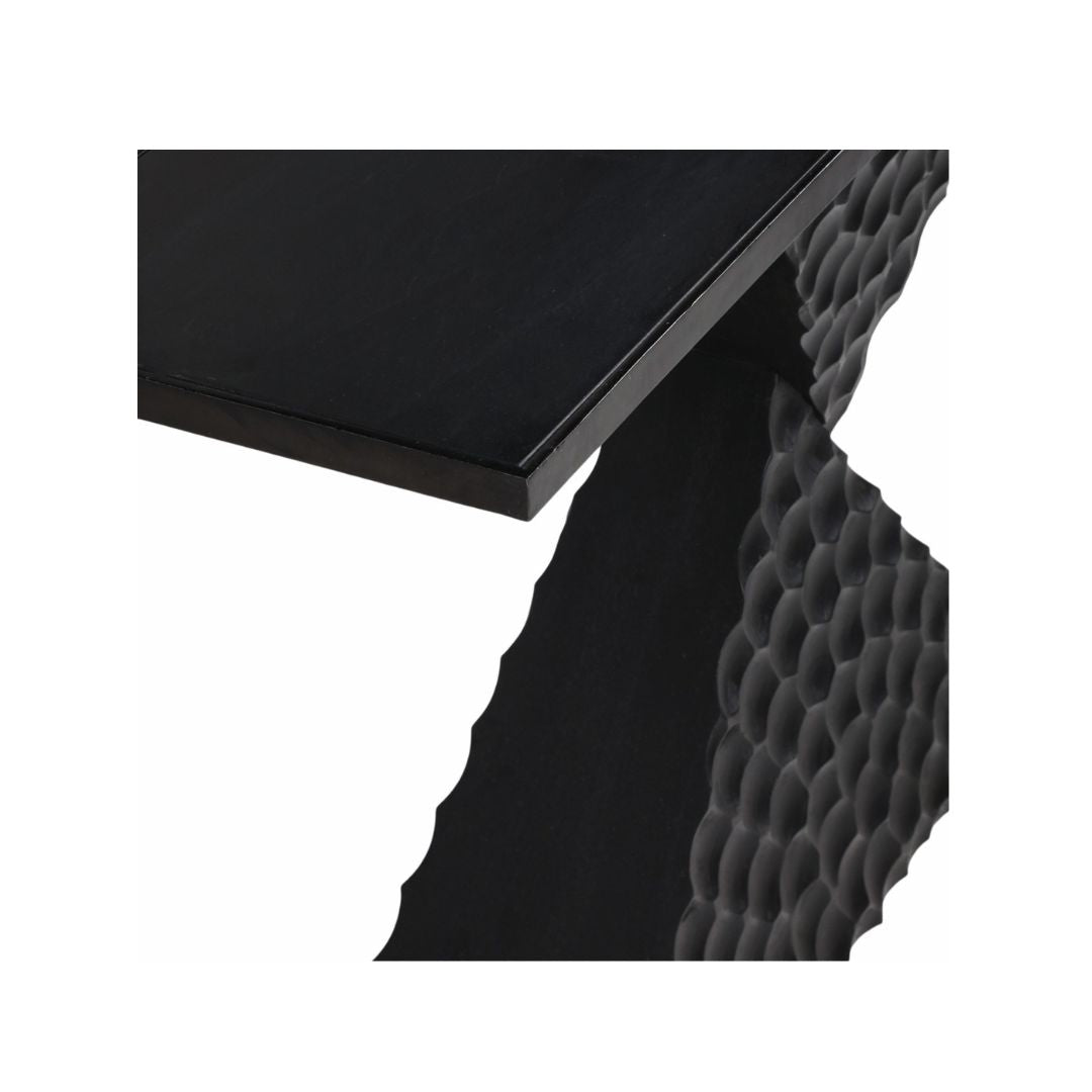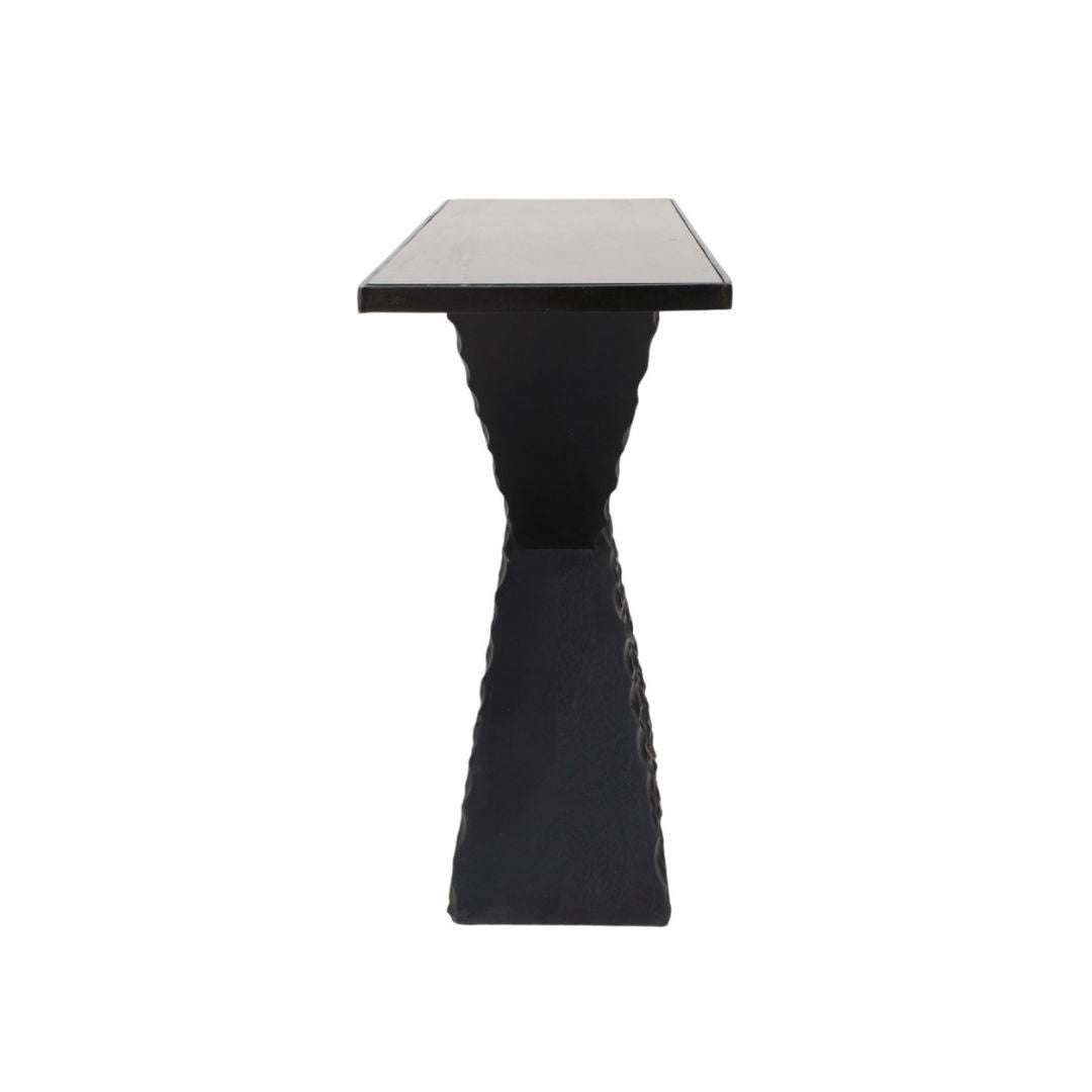 Mesa consola de diseño elegante y contemporáneo en acabado negro con líneas modernas. Su estructura sobria y su superficie lisa la convierten en una pieza versátil que aporta presencia y funcionalidad a recibidores, pasillos o salas. Ideal como mesa de apoyo para decoración, lámparas, libros o accesorios, combina fácilmente con estilos modernos y minimalistas.