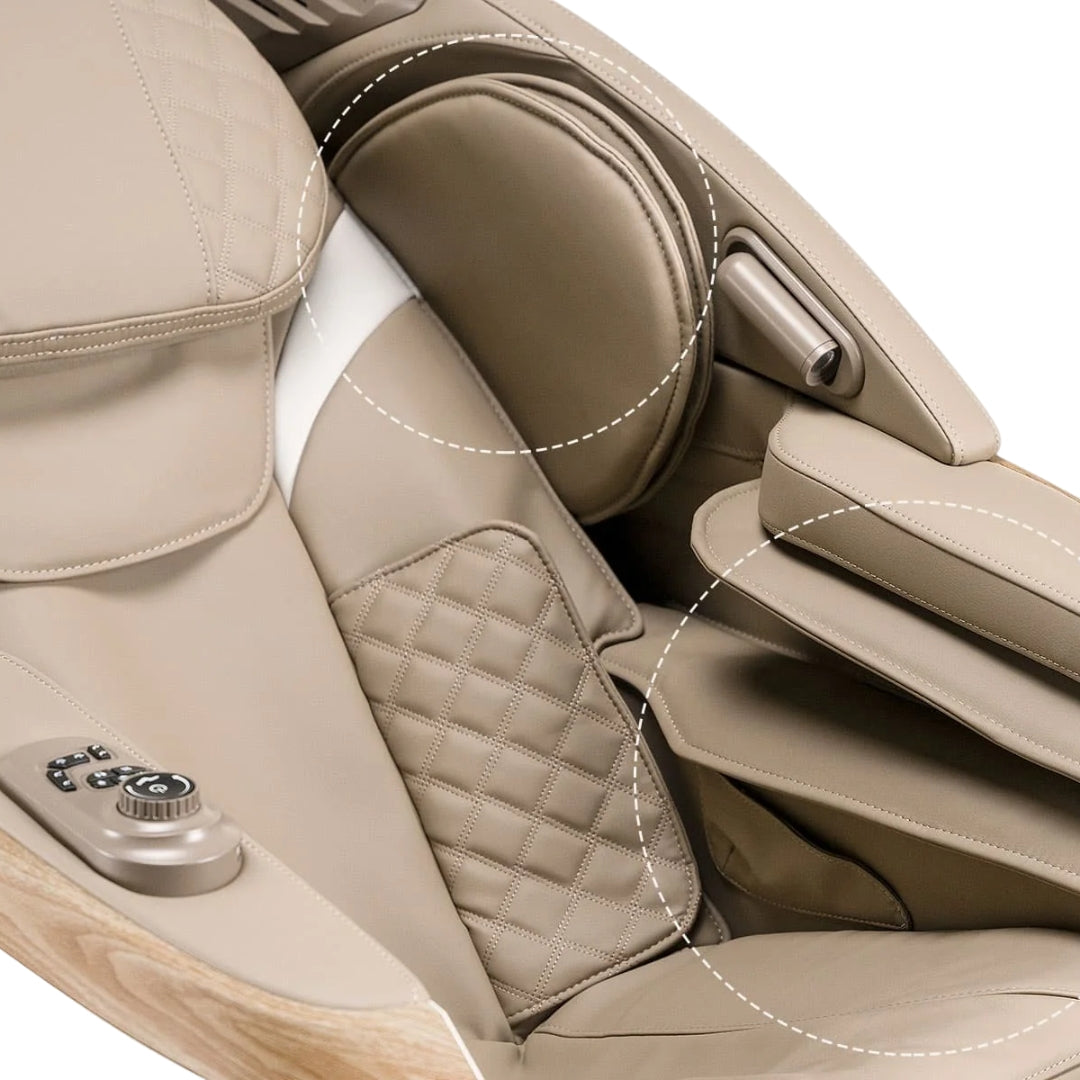 El iRest Queentri es un sillón de masaje de alta gama que combina tecnología avanzada, confort absoluto y un diseño elegante con detalles en cuero ecológico y acabados de lujo. Su sistema de masaje 3D con recorrido en forma de “SL” cubre desde el cuello hasta los muslos, ofreciendo 18 programas automáticos y 11 técnicas profesionales para una experiencia personalizada. Incorpora calefacción en la espalda y los pies, posición Zero Gravity, rodillos para masaje plantar, altavoces Bluetooth, puerto USB y control por voz en inglés. Su diseño ergonómico, sumado a funciones como iluminación LED lateral y memoria para configuraciones, lo convierten en una opción ideal para quienes buscan bienestar total y estilo en un solo mueble.