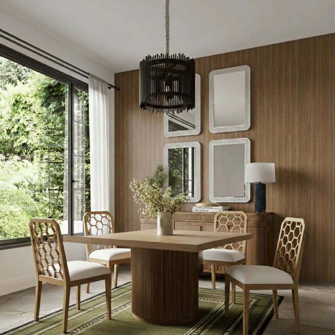 El Juego de Comedor Cuadrado Kraton con 6 sillas Ceylon combina líneas limpias, diseño sofisticado y fabricación artesanal. Su mesa cuadrada con base central acanalada ofrece estabilidad y una presencia elegante, ideal para comedores contemporáneos o de estilo transicional.