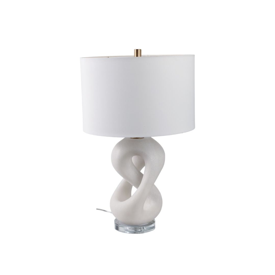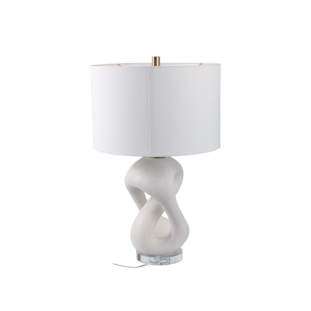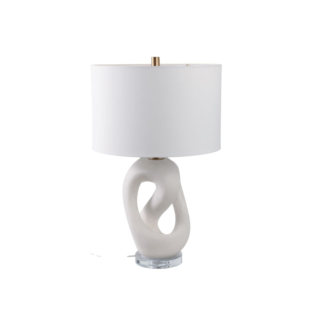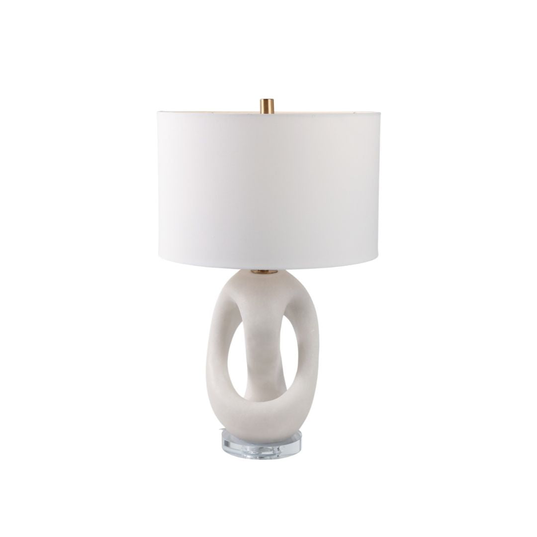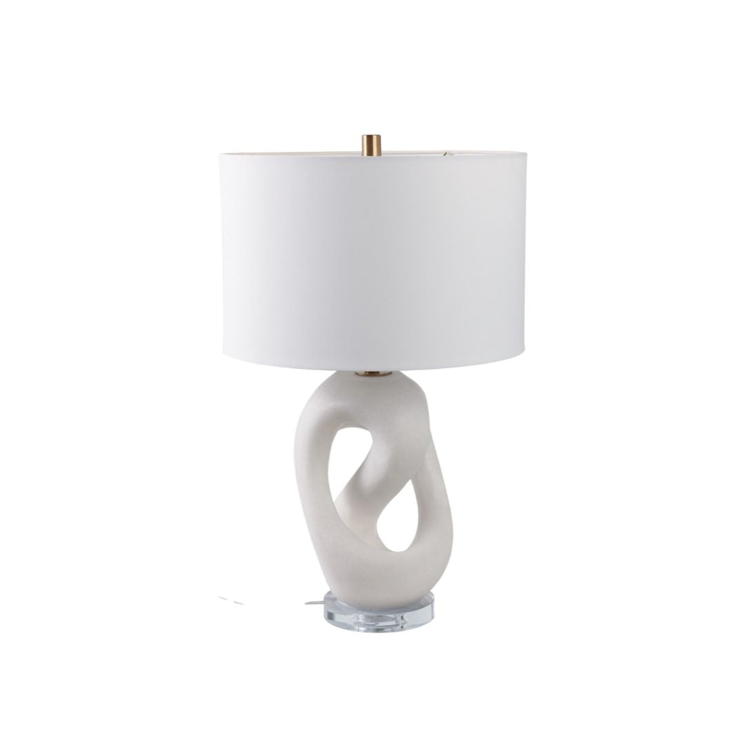 Lámpara de mesa elegante con base en resina tipo cuarzo, que aporta textura, sofisticación y un acabado moderno. Su diseño contemporáneo la convierte en una pieza decorativa y funcional, ideal para salas, dormitorios, recibidores o mesas auxiliares. La luz difusa que ofrece contribuye a crear ambientes acogedores y con estilo.